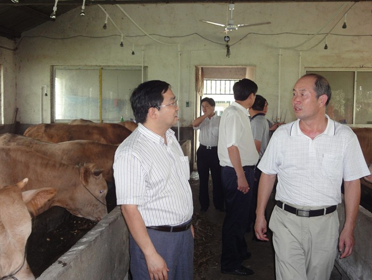 14?16日,中原大地,酷热难耐。昝林森教授在河南泌阳与肉牛体系驻马店实验站站长祁兴磊一起,深入夏南牛科技开发有限公司、华夏肉牛养殖有限公司、溢佳香肉牛育肥公司等三家企业调研指导,就夏南牛良种繁育、后备种公牛培育、基础母牛选育、种牛性能测定以及夏季肉牛育肥过程中应注意的技术环节,为这些企业的负责人、技术人员进行了现场技术咨询服务。在河南镇平,昝林森教授与南阳市畜牧局副局长王冠立一起,现场考察了南阳润达投资有限公司的肉牛养殖场、屠宰加工车间、饲草饲料基地建设情况,并与该公司负责人和相关技术人员进行了座谈交流。座谈会上,昝林森教授就南阳润达公司不同发展阶段的肉牛品种定位、杂交组合选择、牛源基地建设、产品开发模式、产学研合作方式等企业特别关心的问题提出了建设性意见和建议,形成了共识。在河南调研期间,昝林森教授还就夏南牛、南阳牛选育改良工作,与当地政府及其畜牧局的领导进行了座谈交流。