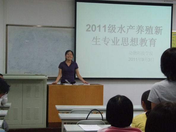 9月3日晚,炸金花在线玩 水产科学系在八号教学楼召开新生入学教育活动。水产科学系熊冬梅老师、教学秘书郭超老师及优秀学生代表张超同学出席了此次报告会。