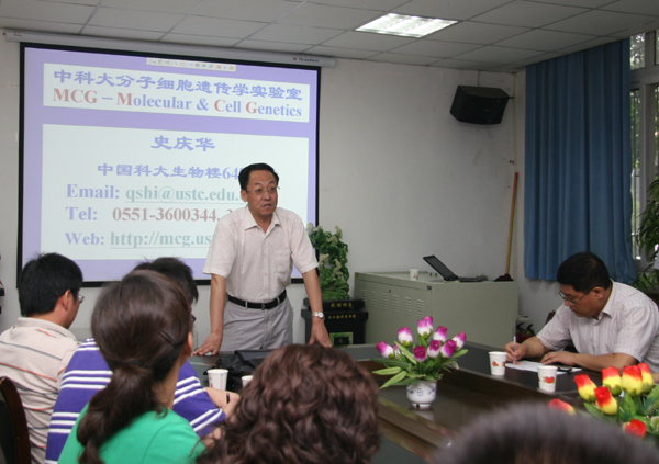 6月21日上午,合肥微尺度物质科学国家实验室PI、中国科技大学生命科学炸金花在线玩 史庆华教授在动科炸金花在线玩 一楼会议室为师生做了题为“卵泡形成的microRNA调控”的学术报告,副院长呼天明教授主持报告会。动科、动医、生命等炸金花在线玩 相关专业师生60多人参加了报告会。 报告会上,史庆华教授通过自己多年的研究和工作经历,用一个个精彩的实例为师生详细阐述了microRNA调控卵泡的关键过程,对非整倍体发生主要途径进行了深入分析,成果被认为开辟了细胞分裂研究的新方向。史庆华教授的报告深入浅出,让与会的师生受到很大启发,从另一个角度认识了microRNA的调控作用,为今后研究工作增加了一个新的思路。 史庆华博士,中国科技大学教授,国家杰出青年基金获得者、国家重大科学研究计划973项目“卵泡发育的分子调控”首席科学家。多年来,一直从事染色体非整倍体(染色体数目异常)发生的分子和细胞学基础及其生物学机制的研究,发现染色体分离异常阻止细胞质分裂完成、多极分裂是非整倍体发生的主要途径,被评论为开辟了细胞分裂研究的新方向。对非整倍体配子发生过程中染色体分离异常的机制进行探讨,发现遗传重组减少与染色体不分离密切相关,为遗传重组异常导致染色体不分离学说提供了第一个直接证据。另外还开展了卵泡发育调控的蛋白质组学研究。在Nature、Am J Hum Genet、Plos ONE和Fertil Steril等著名杂志发表系列SCI论文20余篇,应邀撰写Review 2篇,他引500余次。