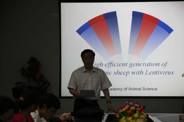 报告会上,刘明军研究员向大家介绍了慢病毒载体高效转基因绵羊生产技术方面的研究进展,以及国内外对此技术的应用情况,并结合自己的研究方向和内容,刘明军研究员还为大家分析了目前转基因技术研究存在的主要问题及解决思路,对今后的转基因工作研究进行了展望,并提出了自己的见解。