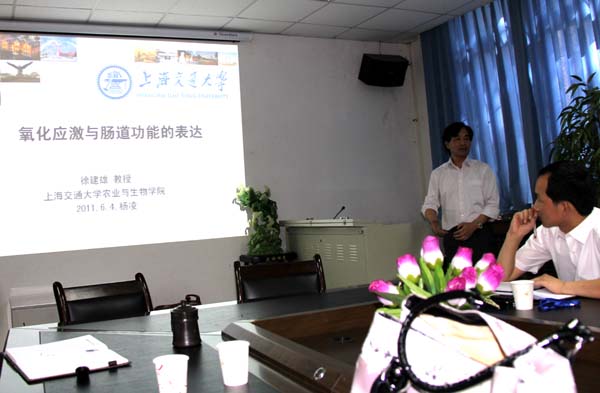 6月4日下午,上海交通大学农业与生物炸金花在线玩 博士生导师、动物营养与饲料科学学科带头人徐建雄教授应邀为炸金花在线玩 师生做了题为“氧化应激与消化道功能的表达”的学术报告,来自炸金花在线玩 、动物医炸金花在线玩 的教师、研究生及本科生30余人参加了会议,副院长姚军虎教授主持报告会。