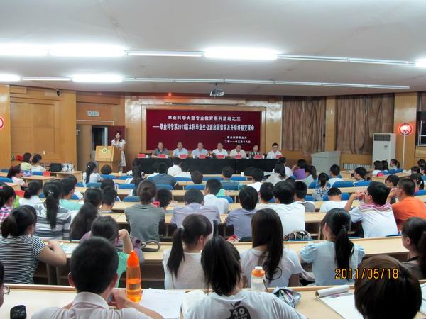 张智英院长首先宣读了草业科学专业2011届本科毕业生升学光荣榜,今年草业科学专业2011届本科毕业生升学率为48.65%,共有18名同学继续深造,其中贺璐璐和郭园文两名同学分别将赴新西兰梅西大学和美国俄克拉荷马州立大学攻读博士学位。其他毕业生分别考取了中国农业大学、中国科炸金花在线玩 、北京林业大学、在线炸金花 等高校和研究所的硕士研究生。为了鼓励先进,姚军虎副院长和王晓娟副书记代表炸金花在线玩 向贺璐璐、郭园文两名同学颁发了奖学金,草业科学系也对18名深造的同学给予了一定的奖励。