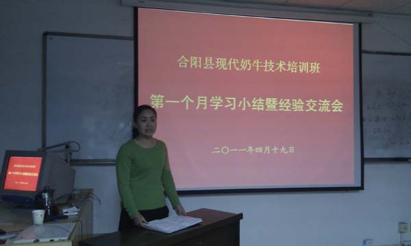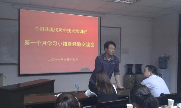 会上,培训班每位学员就来校一个月的学习生活做了总结汇报,并结合合阳县奶牛业发展的实际情况,针对所学课程进行了学习总结和经验交流。班主任李丽老师对学员的汇报发言进行了点评,充分肯定了学员们前一阶段的学习成绩和工作热情,希望全体学员再接再厉,圆满完成此次培训任务,以优异的成绩和精湛的养殖技术促进合阳县的奶牛养殖事业健康、快速发展。