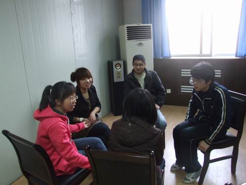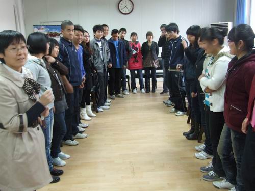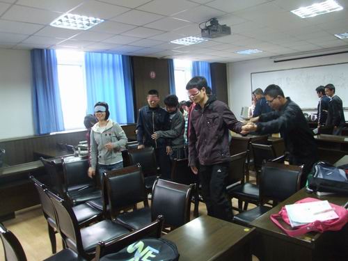 本次座谈会不拘泥于以往的会场秩序,在金老师的指导下,来自不同专业、年级的同学自行分组,相互介绍并与新朋友分享自己感兴趣的事情。在不知不觉的交流中,尴尬的气氛得以缓解,师生畅所欲言。为了让同学们更好的感受到生活中沟通、信任的重要性,金老师与同学们一起做了“盲行”的游戏。同学们在帮助与被帮助的过程中感触颇深,各自分享了自己参与游戏的感受。