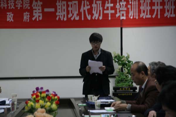开班典礼上,张智英院长从机构设置、本科教学、研究生培养和科研推广等方面向学员们介绍了炸金花在线玩 的基本情况,并希望通过举办此次培训班,进一步加强炸金花在线玩 与合阳县的科技合作,推动合阳县奶牛养殖业的快速发展。授课老师代表张英汉教授、培训班班主任李丽老师和学员代表王昊先后做了表态发言。