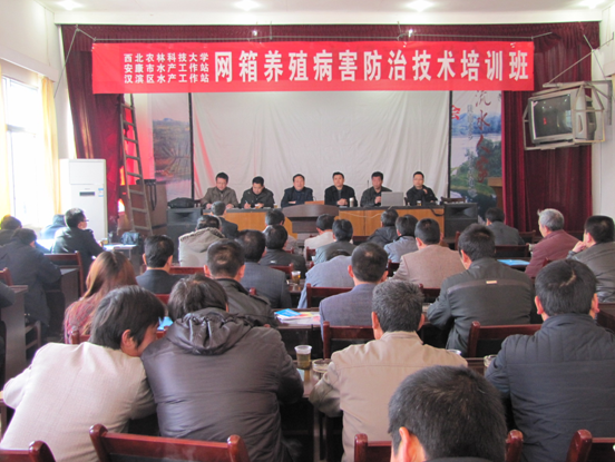 新春伊始,趁着渔民农闲,安康水产试验示范站立即着手开展水产养殖技术培训工作。3月7日-8日,与安康市水产站及汉滨区水产站共同举办的“网箱养殖病害防治技术培训”和“名特优水产养殖技术培训”如期开课,安康市水利局陈万富书记和水产站李志安副站长出席了开班仪式并讲话,来自汉滨、旬阳、石泉、汉阴、宁陕、紫阳、岚皋、平利、镇平等区县的水产养殖企业和养殖大户160多人参加了培训。