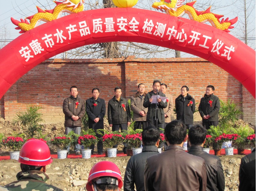 1月15日,安康市水利局在汉滨区恒口镇举行安康市水产品质量安全检测中心工程开工仪式,安康水产试验示范站吉红、王永军、刘超等应邀参加了仪式。