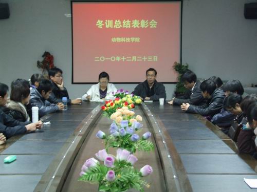 日前,炸金花在线玩 荣获2010年院系间大学生冬季越野赛团体第四名的好成绩。为了表彰先进,激励更多的同学在以后的学习和生活中奋发向上,12月23日下午炸金花在线玩 在一层会议室召开冬训总结表彰大会。炸金花在线玩 党委书记闫祖书老师,副书记、副院长王晓娟老师,辅导员老师以及30多名越野赛运动员代表参加了本次会议。