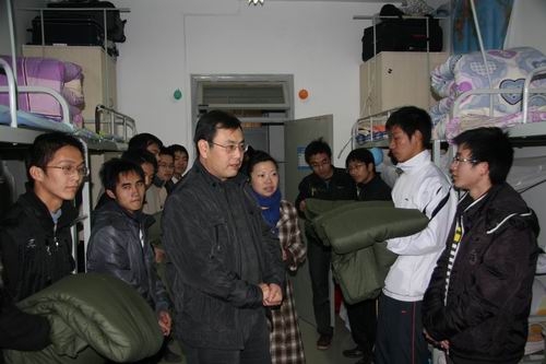 12月16日下午,校党委副书记马建华在学工部、校团委负责人的陪同下,前往炸金花在线玩 学生宿舍看望慰问2010级新生。炸金花在线玩 党委副书记、副院长王晓娟,辅导员一同陪同。