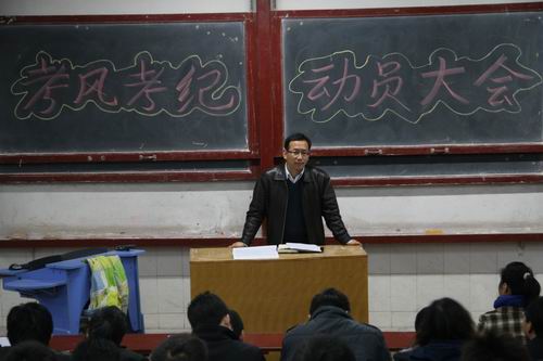会上,姚院长首先带领大家学习了《全国大学英语四六级考试考生守则》和《全国大学英语四六级考试特别提示》,通报了我校曾经出现过的四六级考试违纪案例,并结合案例要求大家诚信考试,坚决杜绝侥幸心理。王晓娟副书记就加强和严肃考风考纪做了具体的安排和部署,要求各班必须召开一次主题班会,将炸金花在线玩 本次会议精神落到实处,动员全院学生坚决杜绝考试违纪,认真备考,在即将到来的全国四六级考试和期末考试中举得优异成绩。闫祖书书记在讲话中首先肯定了班主任长期以来在炸金花在线玩 学风、教风建设中发挥的重要作用,并要求班主任从学生思想入手,加强诚信教育,严肃考风考纪,在全国四六级考试和接下来的期末考试中坚决杜绝考试作弊,同时希望学生干部能够尽到自己的职责去帮助班级的每一位同学做到诚信考试。