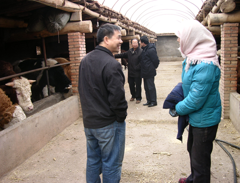 2010年12月4~7日,国家肉牛产业技术体系岗位专家陈宏教授及其团队成员雷初朝教授和蓝贤勇副教授,在张掖肉牛综合试验站站长朱跃明团队陪同下,对在甘肃张掖进行调研、现场指导并组织肉牛技术培训。在对张掖市甘州区3镇5村的调研中发现,甘州区母牛饲养数量比较多,牛舍保温通风情况较好,但牛舍卫生条件有待加强,饮冷水情况较多。陈宏教授团队对冬季饲养管理进行了现场技术指导,要求加强冬季肉牛犊饲养管理,注意肉牛的饲料搭配,牛舍保暖,保持牛舍通风,中午暖和时让牛晒晒太阳,并注意搞好饲养卫生条件,饲草料需要铡短,需要饲喂温水。