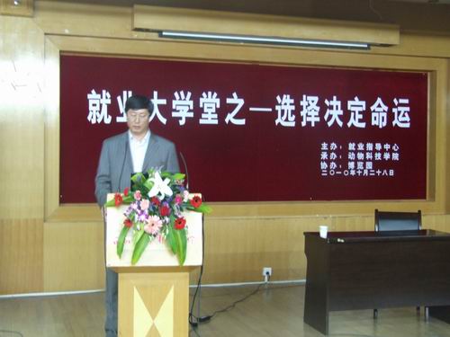 10月28日晚,由我校就业指导中心主办,炸金花在线玩 承办,博览园协办的就业大学堂系列报告会之一--“选择决定命运”报告会在七号楼二层报告厅成功举办。禾丰集团常务副总裁高全利、禾丰集团西北区总监金宏宇、禾丰集团西安分公司副总经理杨俊峰以及我校就业指导中心主任胥耀平、副主任孙玉瑷、炸金花在线玩 党委书记闫祖书等应邀出席,报告会由炸金花在线玩 党委副书记兼副院长王晓娟主持,200余名同学聆听了此次报告会。