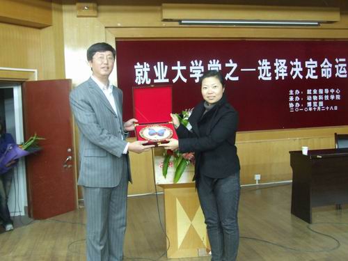 “梦想离现实有多远?”、“大学生就业方向在哪里?”、“选择真的比努力重要吗?”报告会上,高全利先生首先对在场的同学们提出了三个问题,鼓励大家一起来思考。紧接着,他以“选择决定命运”为主题,从大学生的自我定位和发展、用人单位究竟青睐哪些毕业生、如何做好求职准备等几个方面展开讲演。他着重强调了选择对于一个人能否成功的重要性,指出人生往往只有两到三次的可供选择走向成功的机会,大学生要善于抓住机会,学会选择,勇于去选择适合自己的东西,摒弃那些阻碍自己成长和发展的东西。他还告诫同学们,要学会用发展的眼光看问题,还告诫同学们应该树立远大目标,并且脚踏实地的去实现自己的目标,提出“有为才会有位”。高先生还以“经营人生的感悟”为题,结合自己的成长和发展经历,与同学们一起分享了自己如何从农村考上大学“鲤鱼跳龙门”式的转变、如何在职场努力拼搏、如何坚定不移的选择适合自己的工作岗位一步一步走向成功的丰富阅历,再次告诫同学们要坚定自己的选择,一旦做出选择就要全力以赴的为之去奋斗。高总裁结合自己的人生经历为同学们生动地阐述了一个个深刻的哲理,他时而风趣幽默、时而发人深思,不时博得在场观众的阵阵喝彩,针对学生的自由提问,高总裁都一一作了详细解答,报告会在互动交流的热烈气氛下结束。