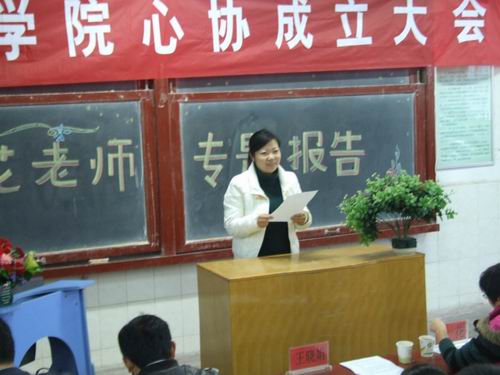 金花老师主要从“心理健康的相关知识”、“大学生常见心理问题”、“心理问题的判断和识别”以及“大学生如何进行自我调试,保持心理健康”等四个方面做了讲演。报告会上,金老师不仅进行了深刻的心理学理论知识的讲解,而且还以近年来发生在我们身边真实的一些例子,深入浅出的为全体心理联络员作了阐述。最后,她重点针对大学生常见的一些心理问题的解决提出了相应的对策。她指出,在大学四年的学习和生活中,首先要合理定位,平和心态,保持积极乐观的人生态度。自由提问环节,现场的各班心理联络员们争先恐后的进行有关方面的提问,提出了许多在日常班级心理健康教育工作中遇到的一些问题以及自己本身所遇到的心理困惑,金老师都一一做了详细的解答。