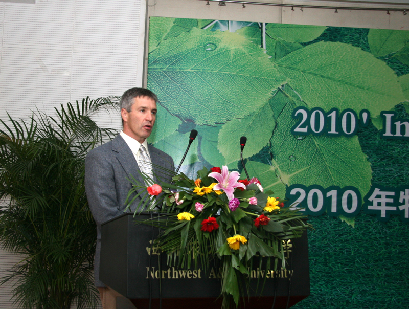 美国农业部牧草及放牧研究实验室Steven Larson做题为“鉴定半干旱冷环境中低投入品种的生物产量、杂交优势及数量遗传性状”的报告