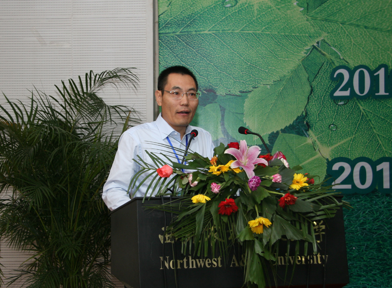 兰州大学王锁民做题为“多浆旱生植物霸王液泡膜Na~+H~+逆向转运蛋白基因ZxNHX在响应盐和干旱中的作用”的报告