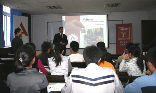 10月11日下午,“奥特奇动物保健公司2010年中国大学巡回演讲之炸金花在线玩-在线炸金花 ”在炸金花在线玩 二层会议室召开。公司的两位代表Matyasi博士与包玉敏博士分别进行了演讲。炸金花在线玩 营养专业研究生和本科生30多人参加会议。