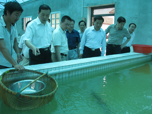 6月24日,安康市市长方玮峰等一行11人,到我校安康水产试验示范站考察调研。方市长一行在校科技推广处吴万兴副处长、试验站首席专家吉红博士等的陪同下,先后考察了试验站的培训教室、实验室、苗种培育车间、室内循环水系统等设施条件,了解了试验站的生产规模、主推品种匙吻鲟的苗种培育等情况。