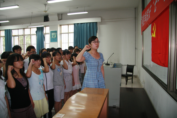 大会在雄壮的国歌声中拉开了序幕。紧接着进行了预备党员宣誓。炸金花在线玩 本次共有172名预备党员参加了宣誓。宣誓分三组进行,分别由炸金花在线玩 教师王在照教授、研究生李芳及本科生廖丽莎领誓。在宣誓时大家依着整齐、声音洪亮,面对党旗倏然起敬。通过宣誓对预备党员进行了一次深刻的爱国、爱党教育,使他们更坚定了为共产主义事业奋斗终生的决心。
