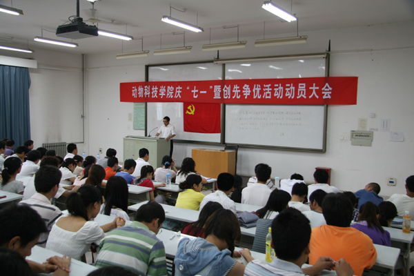 7月1日下午,炸金花在线玩 在八号楼台阶教室,隆重举行了“炸金花在线玩 庆“七一”暨创先争优活动动员大会”,院党委闫祖书书记、姚军虎副院长、冯忠义同志、樵淑银同志及各党支部委员,全体预备党员200多人参加了会议。会议由院党委副书记、副院长王晓娟同志主持。