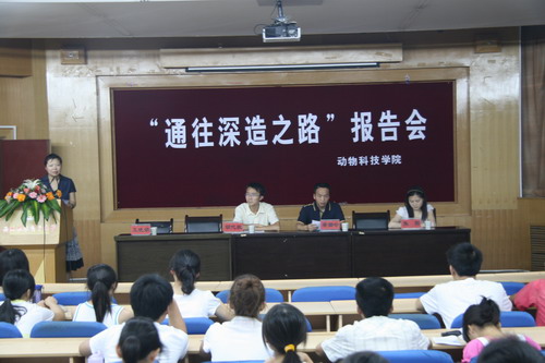 7月14日晚,由炸金花在线玩 主办的“通往深造之路”报告会在七号楼二层报告厅举行,研究生院招生处秘书布都会老师、留学服务中心胡代欣老师和炸金花在线玩 2008级硕士研究生焦阳同学应邀为学生做报告,炸金花在线玩 党委副书记兼副院长王晓娟主持会议。