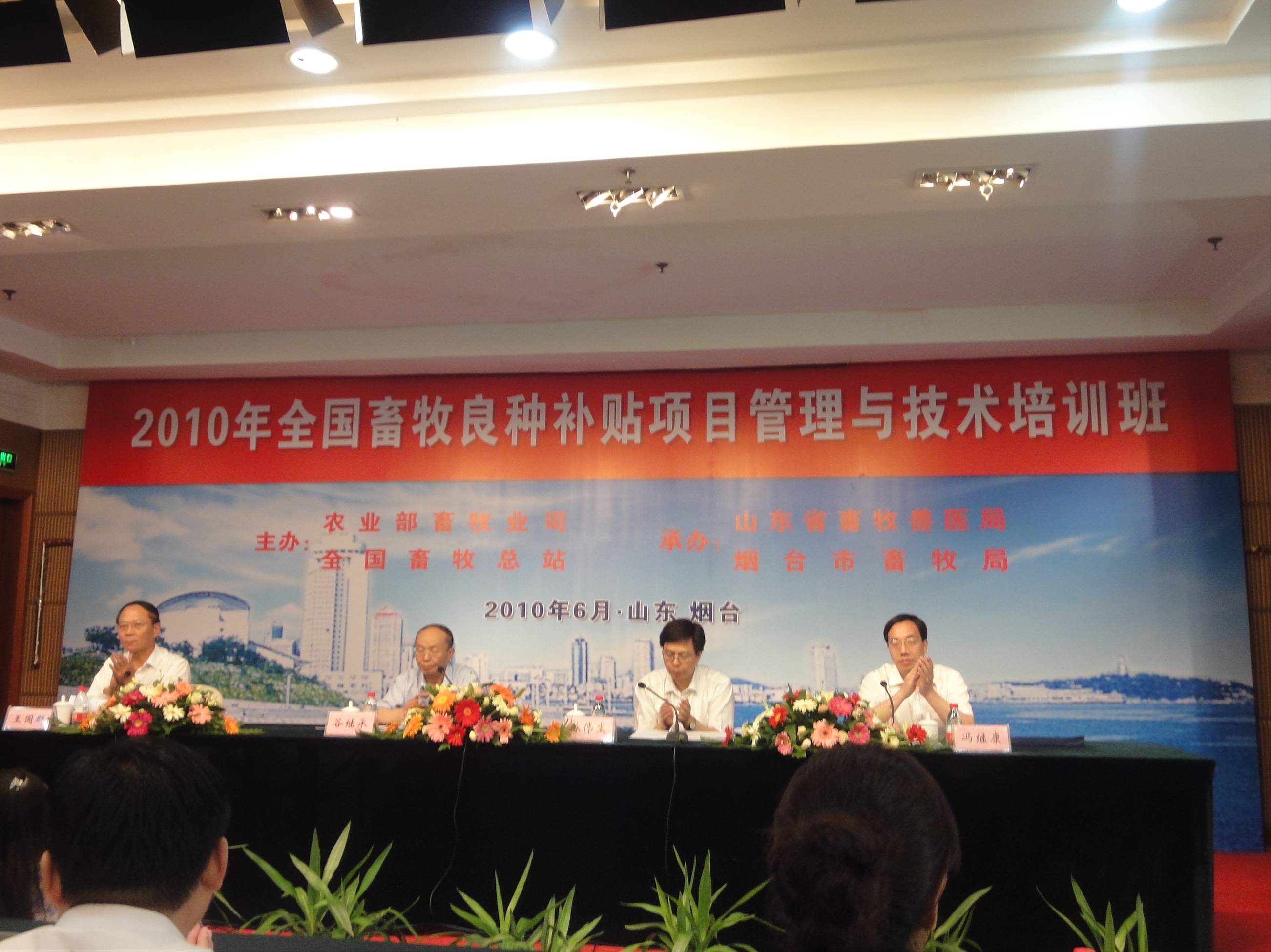 6月10~11日,由农业部畜牧业司和全国畜牧总站主办的“2010年全国畜牧良种补贴项目管理与技术培训班”在山东烟台举行。开班仪式由全国畜牧总站谷继承站长主持,农业部畜牧业司陈伟生巡视员、山东省畜牧兽医局冯继康局长、烟台市政府王国群副市长出席并讲话。陈伟生在讲话中充分肯定了畜牧良种补贴项目实施以来取得的成绩,同时也指出了工作中面临的问题,强调要高度重视良补项目在促进畜牧产业优化升级方面的重要意义,不断创新项目管理机制,要引入市场经济的理念提升项目实施的效果,加强种畜性能测定和后备种畜的培育,全面提高技术人员的素质和业务水平,力争在更大层面发挥良种项目的惠农作用。