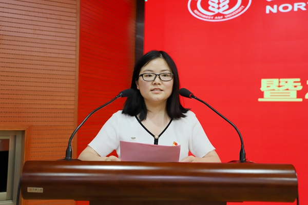 党委委员、副院长(主持工作)姜雨同志为受表彰的教工优秀党务工作者颁奖
