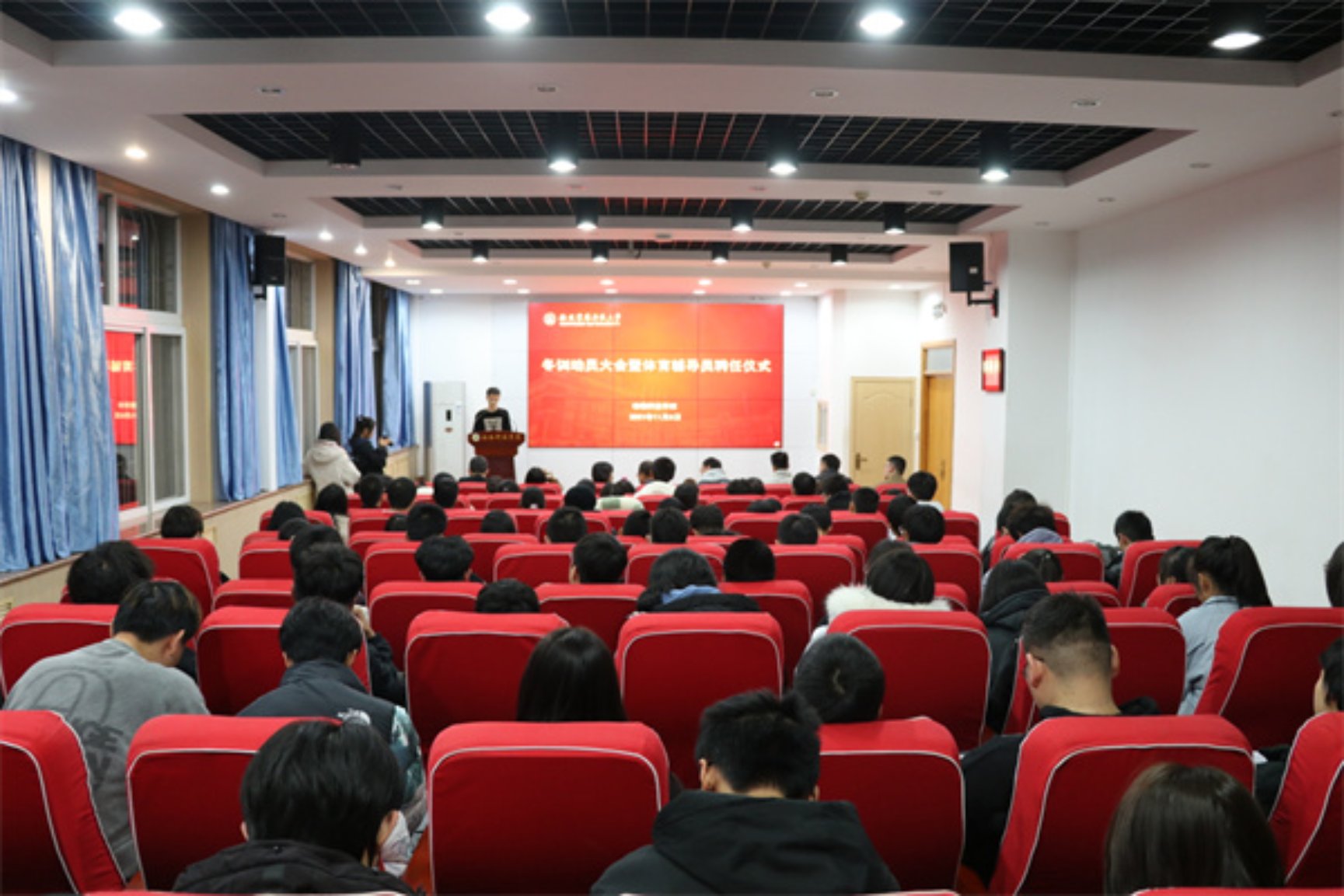 11月8日下午,炸金花在线玩 在107会议室举行炸金花在线玩 2021年冬训动员大会暨动科炸金花在线玩 体育辅导员聘任仪式。炸金花在线玩 党委副书记王力,体育辅导员陈艳、冯鑫,全体专兼职辅导员及参与冬训的学生代表参加会议。辅导员冯来顺主持会议。