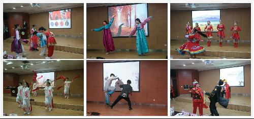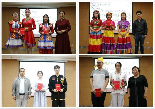 经过有趣热闹的第三环节美哉·祖国名,由校大学生艺术团带来的嘉宾节目《沁园春·长沙》和《我和我的祖国》赢得了在场观众的阵阵掌声,王海成副院长总结道:“我们要像习近平总书记曾说过的那样,各民族像石榴籽那样紧紧抱在一起。”