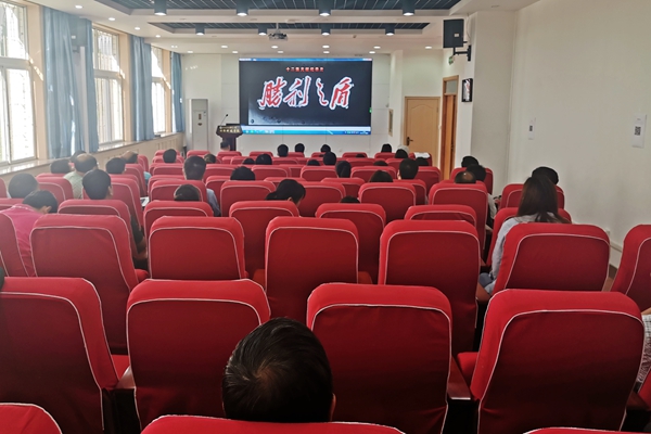 会后,教职工集体观看大型保密文献记录片《胜利之盾》(第三集)。