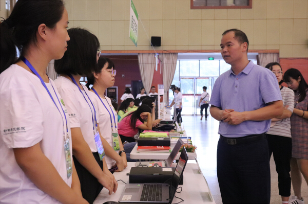 炸金花在线玩 党委书记曹军会、党委副书记王力在23日下午莅临北绣山活动中心大厅指导迎新工作。曹书记亲切地与每一位志愿者交流,关心他们的学业情况与工作状况。在查看了为新生准备的领取材料后,曹书记对炸金花在线玩 迎新工作表示了肯定,同时对在场学生就未来的工作发展提出了更高的期待,希望同学们以最饱满的热情向2019级本科生展现动科学子的风采。
