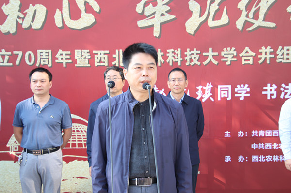 开幕式上,校党委副书记闫祖书、省青书协副主席杨小琪分别致辞。闫祖书对省青书协、杨凌书协、汉中青书协的支持表示感谢。他讲道,举办书法展是同学们以书法言志、以书法言情的一种方式,“情”是热爱祖国之情,“志”是振兴中华之志,希望青年学子认真学习领会习近平总书记给全国涉农高校书记校长和专家代表的回信精神及系列重要讲话精神,牢记使命,勇于担当,围绕“六个下功夫”,不断提升服务祖国、服务人民的能力!杨小琪转达了省青书协张宏春主席对书法展开幕的祝贺,对学校支持学子举办个人书法展给与高度评价,希望广大书法爱好者在书法道路上不断求索,把中华传统文化发扬光大。