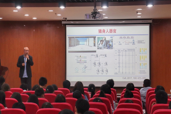 杨小军教授以传统文化《道德经》中提出的一句经典“物形之,势成之”切入,提出“势”即打造高效执行力,找准差别,认清联系,做到知行合一。他以清明上河图中800多个不同人物、60多种畜禽鸟兽、30多座亭台楼阁为例,说明事物之间的差别与紧密联系,以动物营养过程中采食、消化、吸收、代谢、利用及排泄中的差别和联系为例,说明只要抓住事物之间的联系,也一定能把握其本质差别。接着,杨老师用势科学理论,结合自己的丰富阅历、科研团队、所带学生等介绍了教师势、家长势、学习势等,在学习势中,他用“三人行、集腋成裘、大道行思、千里马、君欲何求......”等词语生动举例,让同学们体会到学习交流、善用零散时间,勤于思考的重要性。最后他结合动科专业热词,用通俗易懂的方式向新生们科普了表观遗传、体细胞克隆、转基因等科学知识,生动的讲解不仅让同学们体会到动科知识领域的神奇奥妙,更激发了同学们强烈的学习兴趣。
