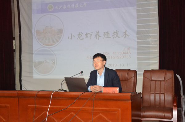 培训会上,吉红教授为学员讲授了“池塘养殖新模式及废水无害排放”,介绍了国内外池塘养殖的新型设施和技术如池塘内循环流水养殖和陆基推水式集装箱养殖模式,重点讲解了水产养殖废水无害化处理的“两微一基一菜”技术;王涛讲师为学员讲授了“小龙虾养殖形势及健康高效养殖技术”。专家们根据自身多年来从事渔业工作的研究和实践积累,为学员深入浅出地进行了授课。