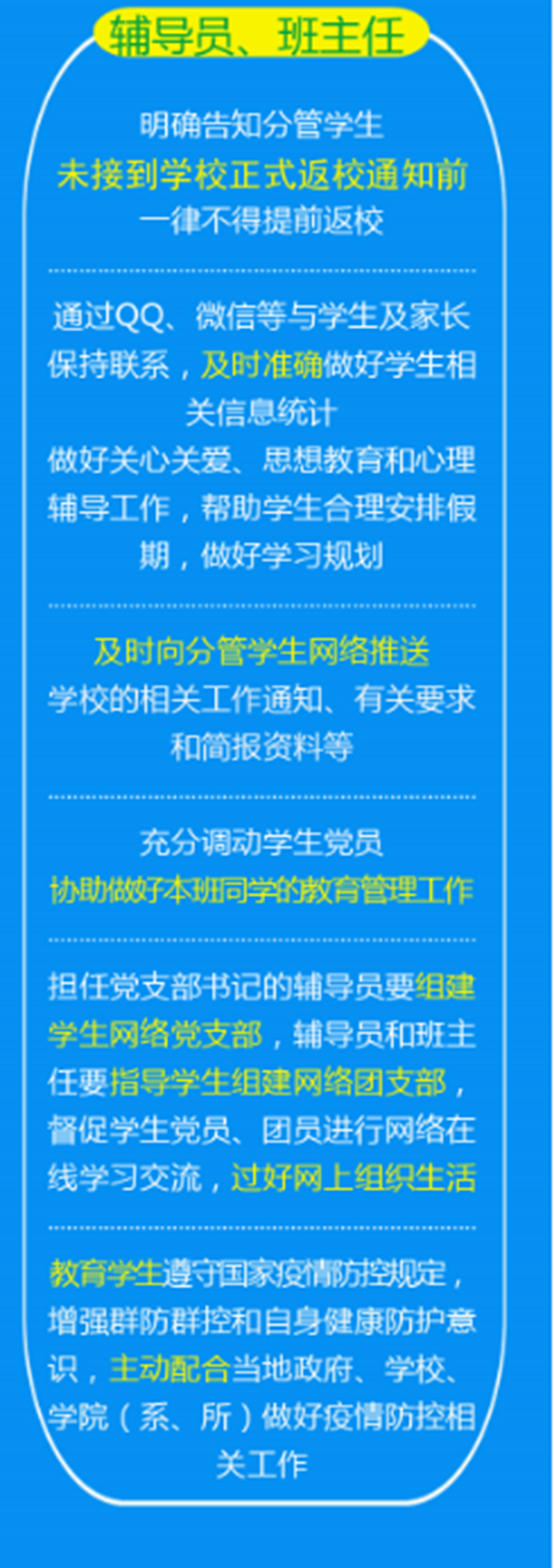 【疫情严防控 动科在行动】图解:学校对学生、研究生导师、辅导员、班主任在疫情防控期间的要求