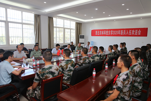9月7日下午,学校在陕西征程国防教育基地召开2020年新兵入伍欢送会,与在此参加集训的19名参军入伍学生座谈。其中动科炸金花在线玩 有3名学生光荣入伍并参加座谈会。校党委副书记闫祖书、党委学工部部长(人武部部长)王文博、杨陵区武装部政委李鸿剑、杨陵区武装部部长李正文、炸金花在线玩 党委副书记王力和相关负责同志参加了座谈会。