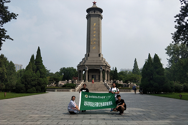 出馆之后,调研团随即进入华东革命烈士陵园,华东革命烈士陵园是山东省人民政府为纪念在抗日战争和解放战争中牺牲的华东地区革命烈士而建。队员们围绕其中心的革命历史纪念塔展开参观,园中大大小小的烈士墓和纪念堂中诉说着无数烈士的故事。游览过程中调研团队长说道:“我们如今的幸福安逸都是前辈们用牺牲换来的,我们不能忘记这些用鲜血染红旭日的英雄们,国防事业的发达才能保障国家的安全,也是每个人民的利益所在,我们应当推动国防教育的发展,宣传国防事业,为祖国国防建设贡献一份力量!”