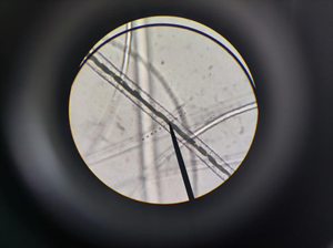 羊毛的长度和细度,是毛纤维的重要物理性质,决定着羊毛品质的基础,也决定着羊毛的工艺价值。羊毛的细度是指羊毛纤维的粗细,一般用横切面的直径表示。也可用品质支数表示,即一磅净梳毛能纺成560码长度的毛纱数。目前世界各地通用的羊毛分级制度都是以细度为基础的,常用的测定方法有显微投影仪法、气流仪法、激光扫描纤维直径分析仪法。在杨老师的指导下,我们使用显微台尺对羊毛细度进行测定。首先使用显微台尺对显微目尺进行校准,测得显微目尺最小分度值所反映的真实长度。其次是制作毛纤维切片,并使用显微目尺测定毛纤维的真实细度。长度也是反映毛纤维质量的重要因素之一。由于羊毛具有天然形成的弯曲,可分为自然长度和伸直长度。自然长度是毛丛在自然条件下,两段间的直线距离。伸直长度是指将毛纤维拉伸至弯曲刚刚消失时两端的直线距离。测定时,随机取50根毛纤维,并放置在黑色毡板上,使用直尺对毛纤维进行测定,并计算伸直率。这两项指标的测定过程都非常简单,但就是测定数量很多,需要耐心进行测定。
