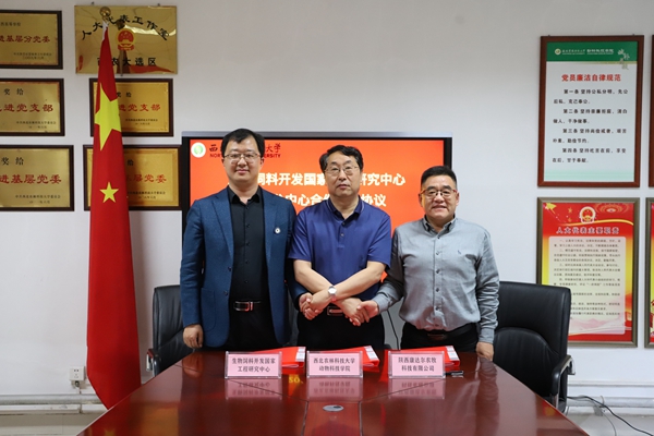 5月16日下午,生物饲料开发国家工程研究中心西北分中心合作框架协议在炸金花在线玩 116会议室成功签约,生物饲料开发国家工程研究中心副主任刘世杰博士、负责人郭永峰,陕西康达尔农牧科技有限公司董事长刘玉瑞、总经理刘洋,炸金花在线玩 院长姚军虎教授、院长助理杨小军教授、杨欣副教授参加签约仪式。