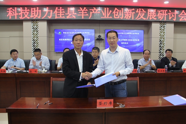 会议围绕佳县羊产业发展需求,对接国家重点研发计划专家资源和创新成果,向农业科技创新县乡村主战场下沉,聘请陈玉林、张恩平等国内10位专家成立“佳县羊产业创新发展科技助力专家团”。陕西省肉羊产业技术体系首席专家张恩平教授向佳县方塌瑞兴种羊场陕西省肉羊体系试验站授牌。杨雨鑫副教授代表我校绒肉羊遗传改良团队与3家在佳县企业现场签署科研合作协议。张恩平教授做了专题讲座和培训。