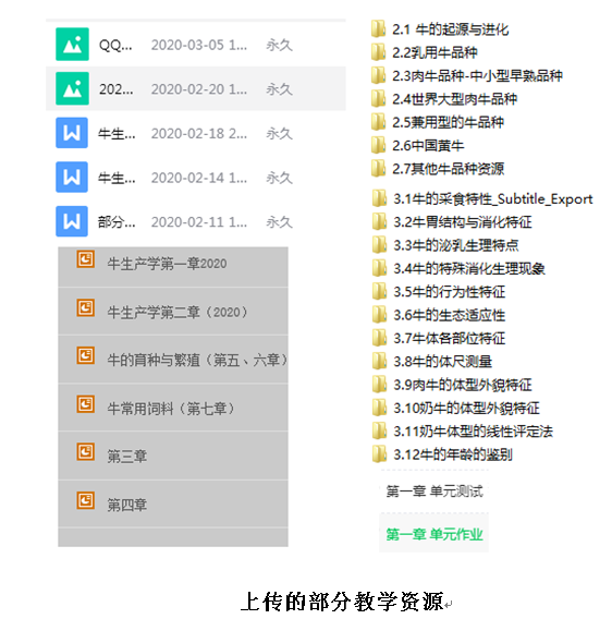 面对突如其来的疫情,牛生产学教学团队第一时间响应学校“停学不停课”的号召,立即组建教学研讨QQ群,讨论本学期网络教学阶段的教学目标、内容和考核方式,明确了加强全过程考核的教学任务。在已有慕课基础上,确定了“MOOC+直播+答疑”的混合式教学方式,在动物科学专业2017级中开展教学实践,教学效果良好。