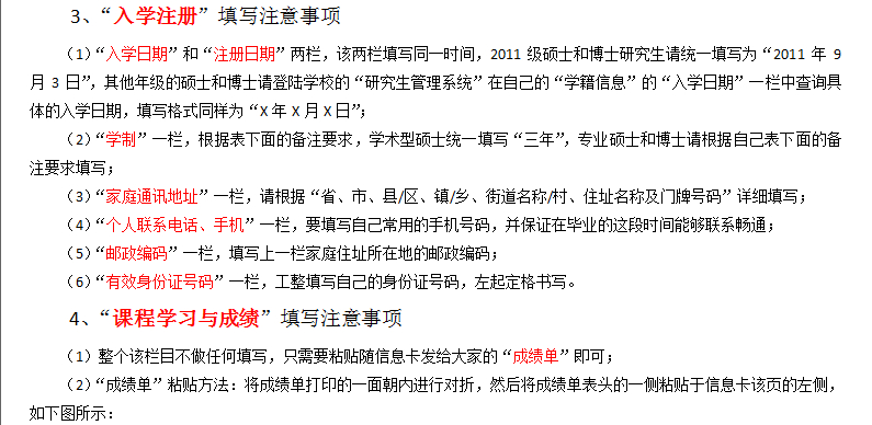 3. 各学科点、研究生指导教师要严格审查学籍档案卡中的各项内容,不留空白,以便各项审批手续能正常进行。