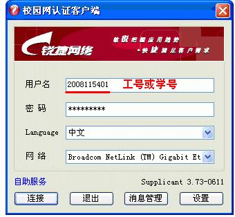 自2010年5月11日起,办公区将采用统一身份认证上网,即:教职工上网账号更换为工号,学生上网账号更换为学号,账户密码与校园信息门户密码一致。