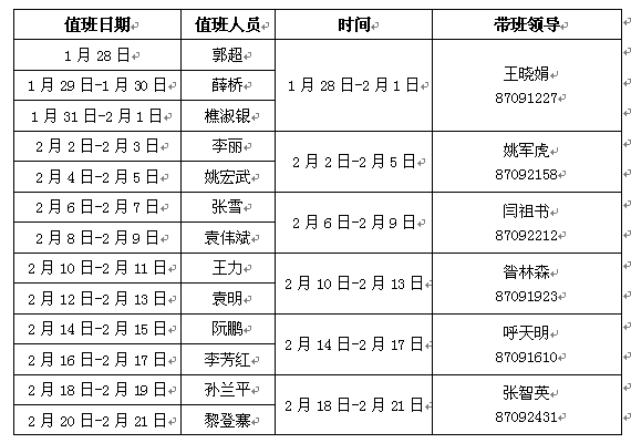 2. 值班时间:上午8:00-12:00 下午2:00-6:00