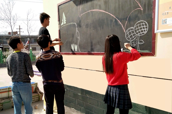 志愿者们在画宣传板