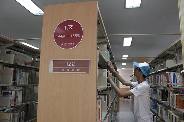 对前一日大量的采访结果进行分析后,队员们意识到个人之前对于丝路文化的认识与了解也存在缺陷与偏颇。针对这种情况,10日早晨,队伍来到了位于碑林区的陕西省图书馆,通过对古典文献和现代学者们的考察调研的学习来加深队员自身对丝绸之路文化的印象,以便更好地向广大民众推广宣传这厚重沧桑的历史。伴随着络绎不绝的的人流,同学们挤进了省图书馆这栋巨大的建筑。分析讨论队伍的采访、宣传过程与细节后,大家决定进入历史、文化和中国古代诗歌两个专区学习研究。