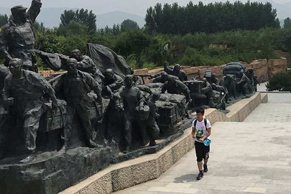 雕塑园从前到后讲述了从我党建立农村革命根据地到解放战争,这两个时期发生在当地的历史事件。前面部分中龙须崮暴动时的群情激奋、秘密宣誓入党时的庄重与坚决、摊煎饼支前的热情,军民鱼水一家亲的温馨暖人给队员们留下来深刻的印象。后半部分中“最后的新娘”、“送最后一个儿子上战场”、“女子火线桥”等一个个故事感人至深,表现了战时根据地人民对党的支持与忠诚,令人震撼。孟良崮战役中人民军队的顽强与无畏深深影响着队员们。陈毅元帅曾在诗中这样写道“孟良崮上鬼神号,七十四师无地逃。信号飞飞星乱眼,照明处处火如潮。刀丛扑去争山顶,血雨飘来湿战袍。喜见贼师精锐尽,我军个个是英豪。”