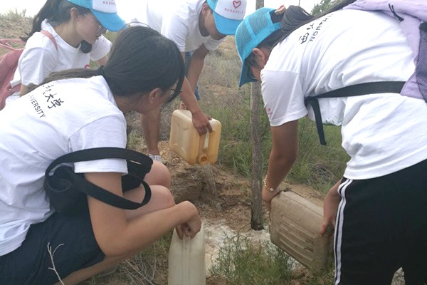 而今,政府给王天昌老人搭建起了朴素的平房,周围环绕着片片绿树。顶着炎炎烈日,队员们跟着王天昌爷爷学习种树防沙知识,在眺望台上鸟瞰,满眼葱郁翠绿。队长严俊不由得感慨:“青山绿水就是金山银山。从曾今的沙漠腹地到如今的葱郁树林,倾注了治沙者的心血,这份绿色来之不易,我们要倍加珍惜。”临走时,老人依依不舍地拿出一大袋黄澄澄的杏子塞给队员们。看向老人的眼睛,似乎能看到曾经的漫天黄沙,却更有现在的树苗绿野,有生活琐碎,但更多的是一片清澈的透亮。