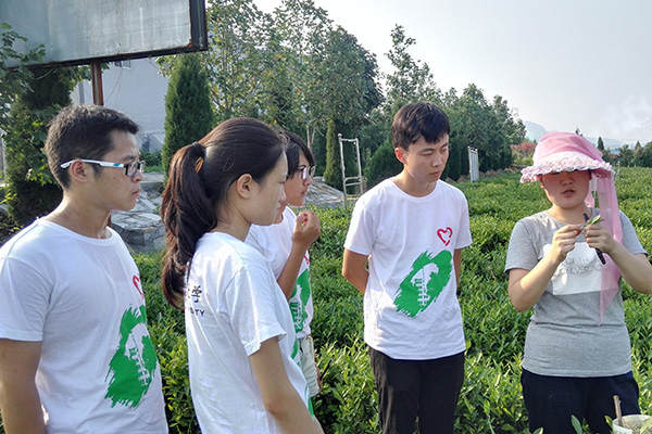 为给后续调研奠定一个良好的基础,方便调研的顺利进行,8月12日,炸金花在线玩 赴日照“寻特产绿茶,传风土人情”调研实践队来到淞晨茶业标准化示范园,同茶树种植人员及技术人员了解茶树生长、管理等方面的知识,并初步学习掌握茶叶的采集技术。讲解员先在室内向大家介绍了绿茶引进、种植、生长、培育、维护和采摘的相关理论知识和原理,队员们认真地听取了讲解,并在笔记本上记录了相关内容。在此之后,在讲解员的带领下,大家克服高温闷热的酷暑天气,进入淞晨茶业“龙井43号”茶树种植园,实践相关知识,并在讲解员指导下亲自上手尝试学习茶叶采摘。炎炎烈日下,茶树飘香,队员们成了一个个专业的“小茶农”,景美人更美,欢声笑语不断。
