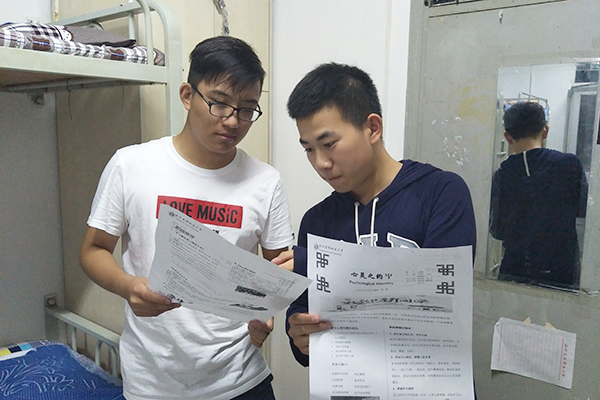 为了解决新生刚入学的困惑,促进2017级新生的身心健康全面发展。9月4日炸金花在线玩 心理健康部在西区2号楼,13号楼以及15号楼向同学们发放《心灵之约》月刊,鼓励大家以宿舍为单位集体学习心理知识,帮助新生快速调节心理状态,尽早适应大学生活,放飞青春梦想。